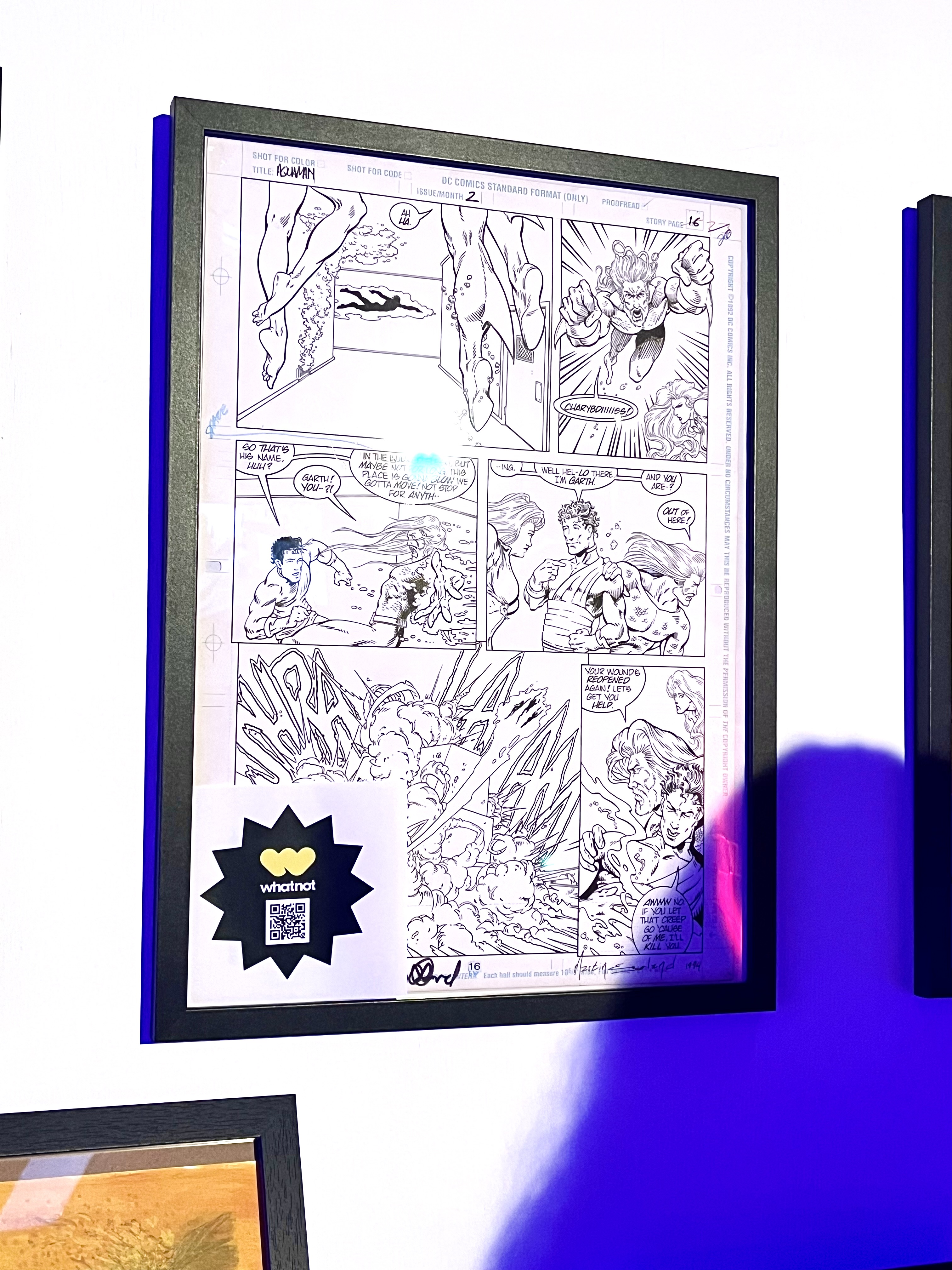 Rosie and I donated original art from our collection to the auction, Aquaman #2 Page 16 by Martin Egeland, Brad Vancata, Peter David, and Dan Nakrosis.